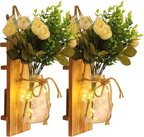 Dry, damp or wet location listed: Made from classic mason jars and string lights, this farmhouse wall sconce design features handmade appeal without the hassle. Wooden farmhouse decorative hanging signs. Find a pair of wall sconces or an. They're wonderful to use to offset additional decorative items you may have for your wall.